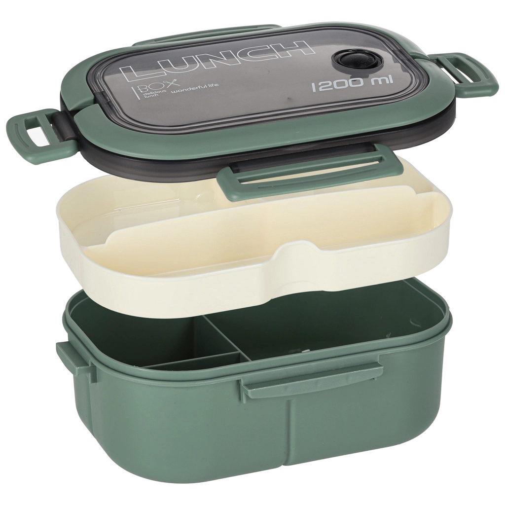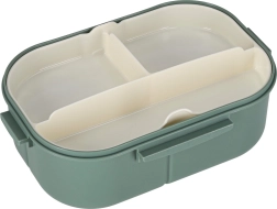 Un lunch box stylé et fonctionnel dans des tons de vert offrant une capacité de 1200 ml et une organisation intérieure bien pensée pour transporter tout le repas en toute simplicité. Grâce au plateau amovible à 3 compartiments, vous gardez les portions séparées sans mélange de saveurs.