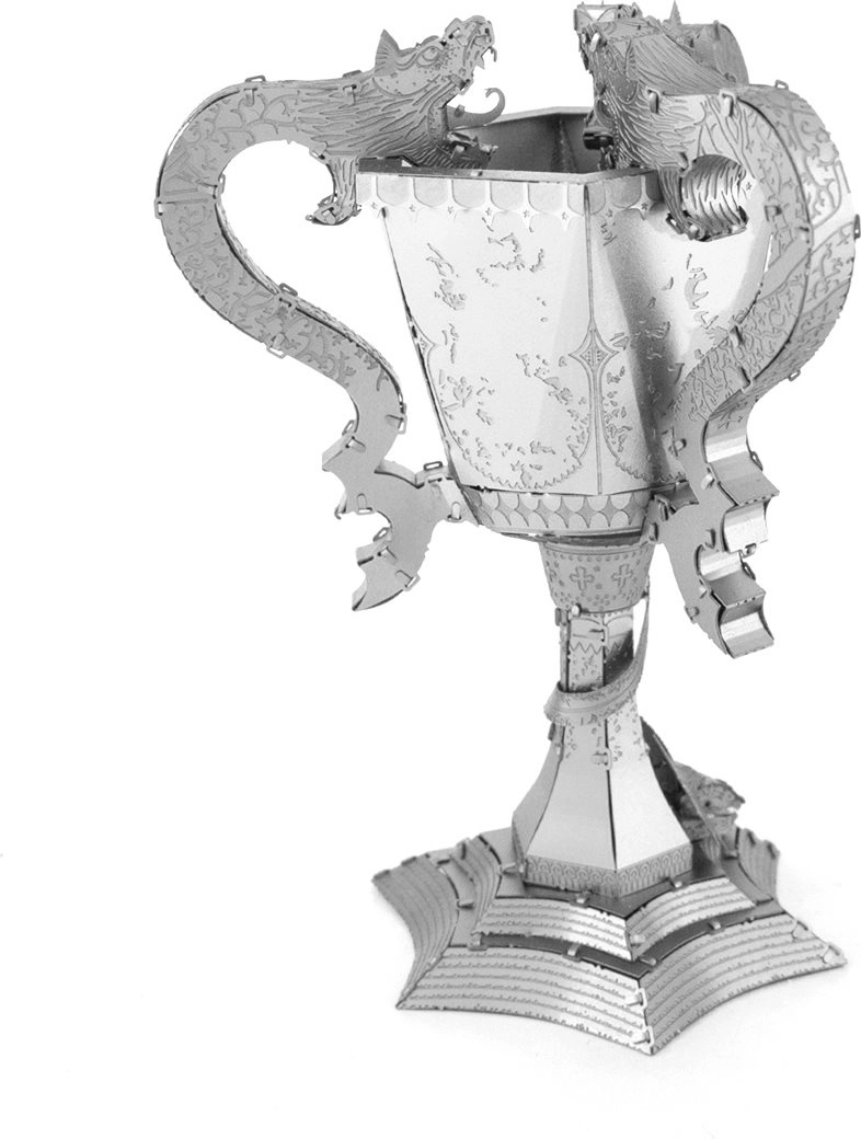 Ce modèle 3D en métal reproduit fidèlement la Coupe des Trois Sorciers avec ses poignées richement décorées en forme de dragons et son motif gravé marqué. À partir de fines plaques d’acier, vous assemblerez un trophée élégant à la surface brillante, qui deviendra à la fois un élément décoratif remarquable et une pièce de collection pour les fans de Harry Potter.