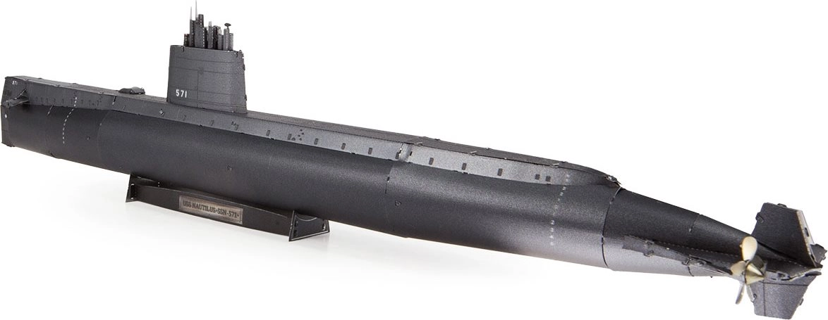 Découvrez le plaisir du travail du métal de précision et créez votre propre modèle du légendaire sous-marin USS NAUTILUS. La série premium METAL EARTH propose des pièces gravées au laser pour un aspect fidèle au navire réel – des panneaux de coque jusqu’au massif et aux hélices. Le modèle fini est idéal comme décoration design et pièce de collection.