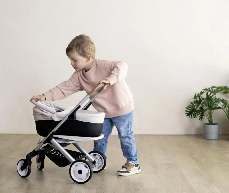 Découvrez une poussette pour poupées moderne et polyvalente qui évolue avec le jeu des enfants. Grâce à sa conception astucieuse, vous la transformez en un clin d’œil du landau à la version sport. La partie supérieure se retire facilement et permet de transporter le bébé dans un panier pratique – idéal en déplacement comme dans la chambre d’enfant.