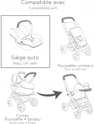Ce set 3‑en‑1 bien pensé transforme les soins aux poupées en un jeu réaliste et amusant. Accrochez facilement le siège auto au cadre pour obtenir une douce balancelle. En faisant pivoter la structure, vous obtenez une chaise haute avec plateau – idéale pour nourrir des poupées jusqu’à 42 cm. La construction robuste et le rembourrage moelleux garantissent le confort de la poupée et la stabilité au quotidien.