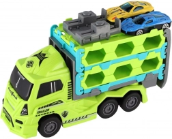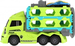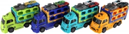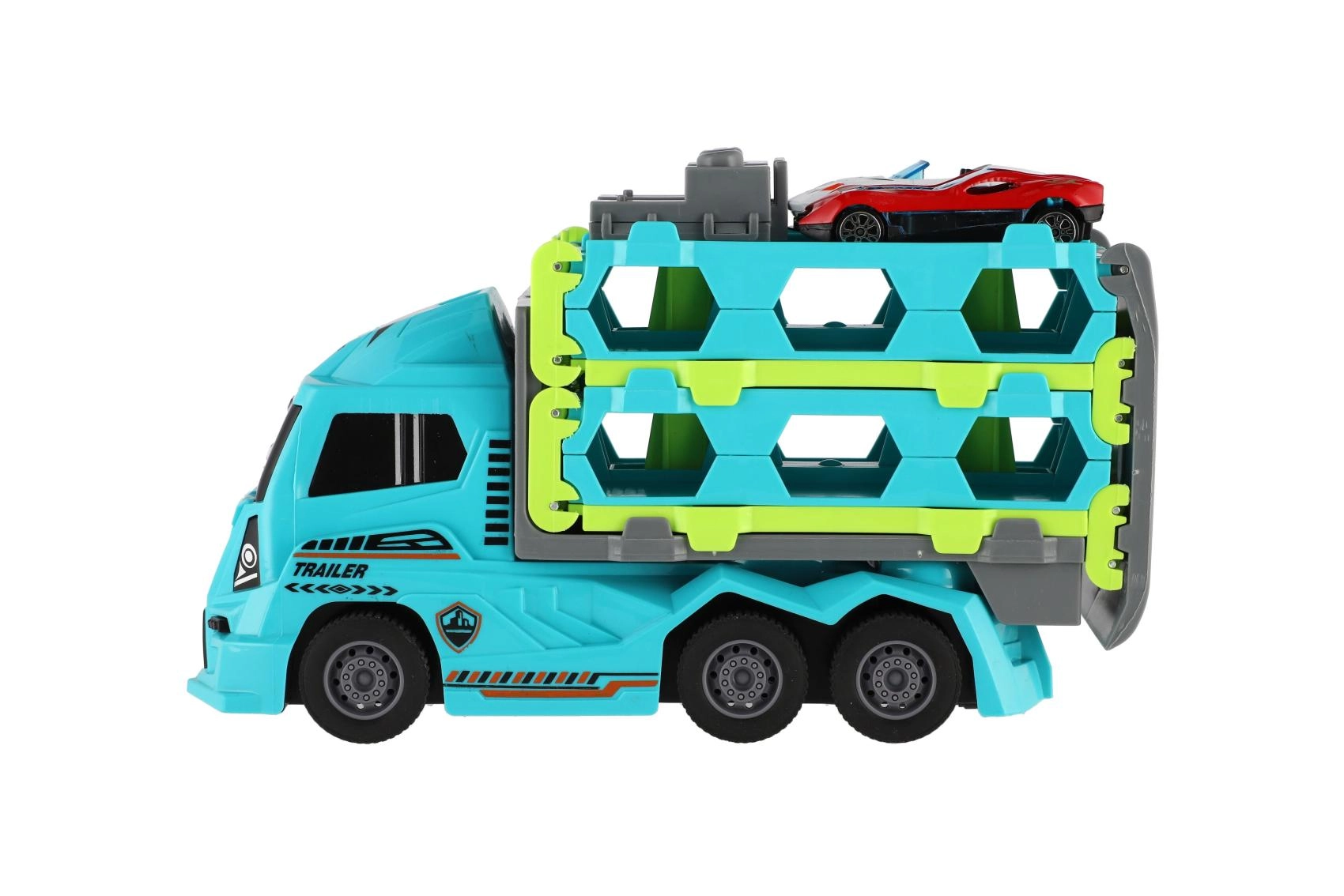 Ce camion en plastique robuste sert de porte-voitures pour de petites voitures de course et offrira aux enfants de nombreuses heures de jeu dynamique. Grâce au mécanisme à friction, il démarre tout seul après l’avoir tiré en arrière, idéal pour jouer sur le tapis comme sur une surface lisse.