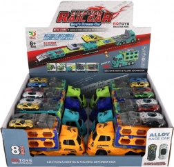 Le coffret comprend 2 petites voitures de sport qui peuvent être chargées sur le pont supérieur et transportées facilement.