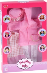 Ce ravissant ensemble rose a été conçu pour des poupées de 36–40 cm et combine parfaitement style, confort et facilité d’utilisation. La robe à fins carreaux rose et blanc est rehaussée d’un volant en tulle, les bas en dentelle ajoutent une note festive et le manteau texturé avec capuche et petite poche réchauffe lors des “journées fraîches” dans l’univers du jeu. Le chapeau à nœud harmonise l’ensemble.