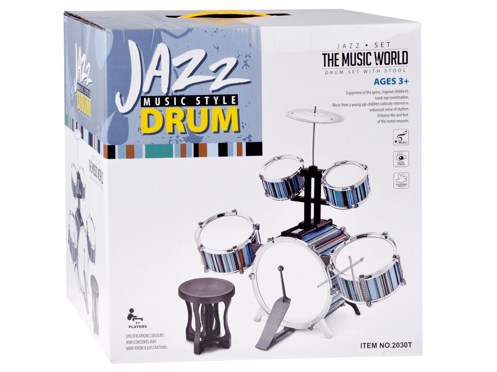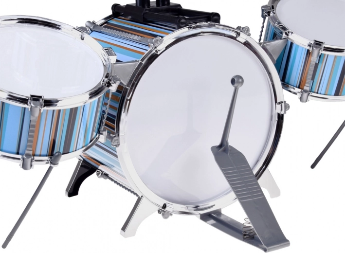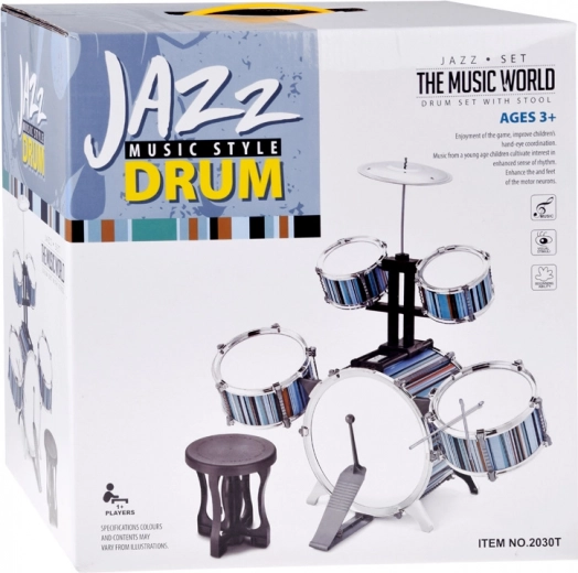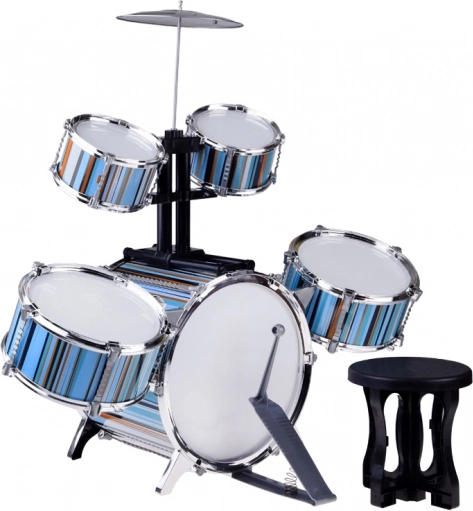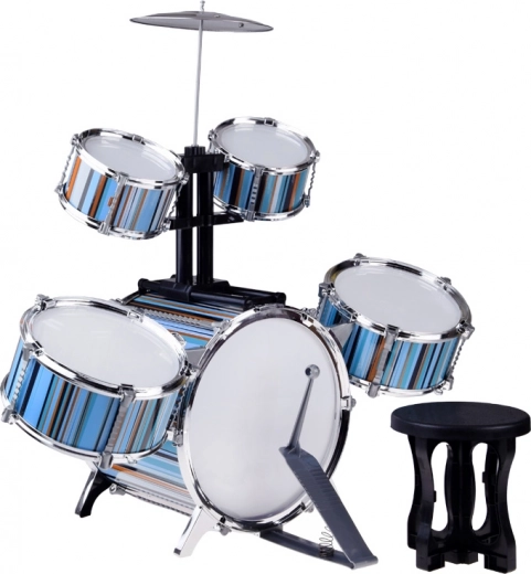Batterie pour enfants 5 pièces avec tabouret – design bleu