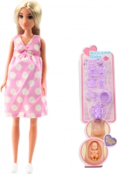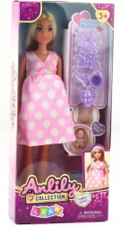 Cette poupée ANLILY enceinte est un excellent jouet pour le jeu de rôle créatif et les soins au bébé. Elle possède un ventre rotatif avec un bébé amovible, porte une robe rose à pois blancs et est accompagnée de pratiques accessoires comme un hochet, des hochets, un biberon, une assiette et des couverts. Sa fabrication de qualité garantit une longue durabilité et un jeu en toute sécurité.