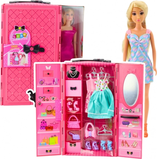 Une poupée stylée avec armoire-penderie rose offre des heures de jeu créatif. Les enfants peuvent habiller la poupée, associer robes, chaussures et sacs à main et créer leurs propres looks de mode. L’armoire possède des portes ouvrantes, un miroir et des étagères à l’intérieur pour ranger les accessoires de façon ordonnée. Un excellent cadeau pour développer la créativité et le sens esthétique.