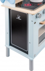 Une cuisine pour enfants élégante en bleu clair ravira les petits chefs dès 3 ans. Elle offre des éléments réalistes comme un four, un micro-ondes et un évier avec robinet, complétés par de nombreux accessoires. Un excellent jouet pour le développement de la motricité fine, le jeu de rôle créatif et l’imagination.