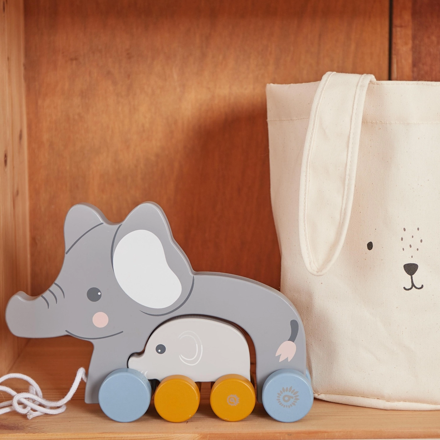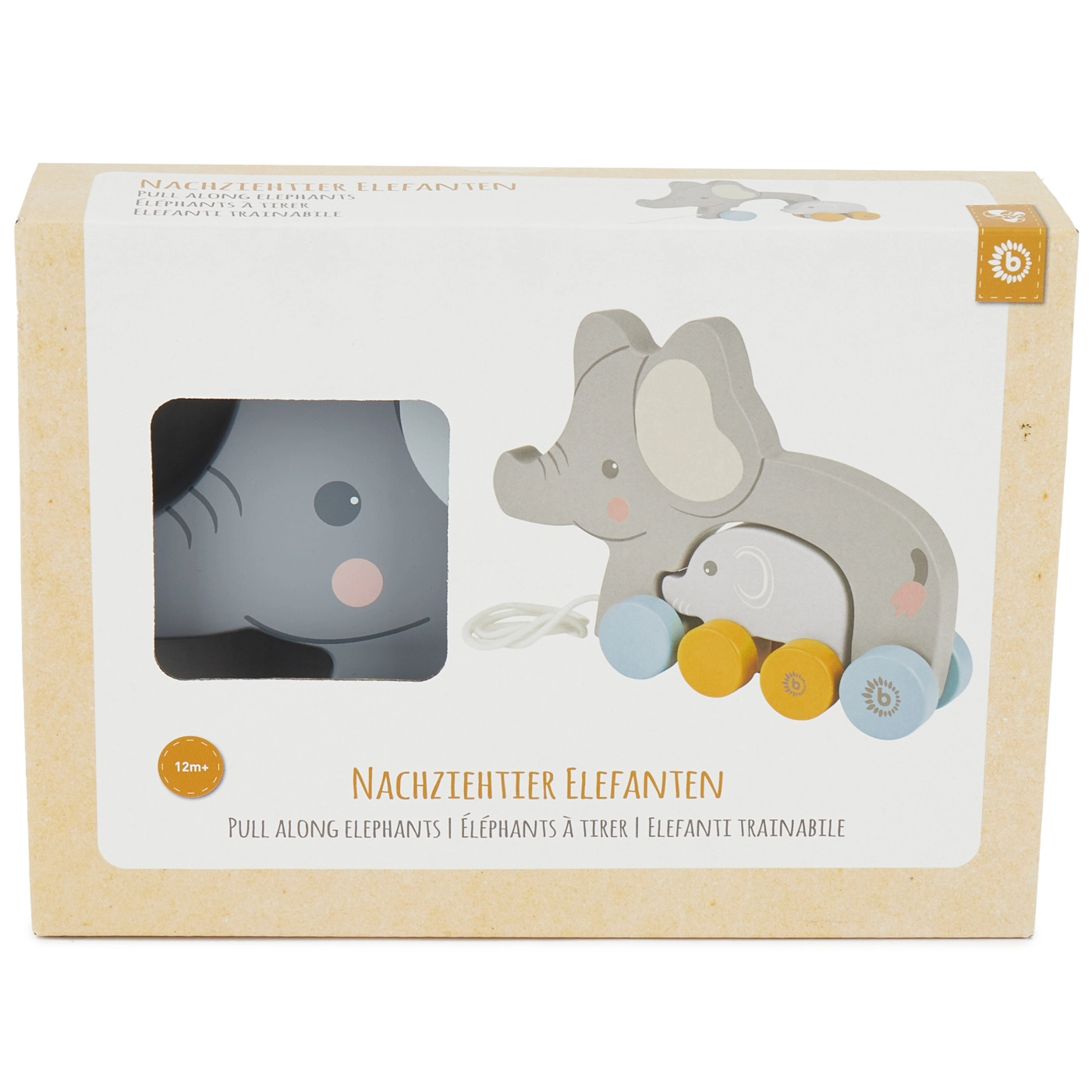 Ce jouet à tirer stylé de la marque Bieco apporte aux enfants la joie du mouvement et de la découverte. Grand et petit éléphant sur des roues stables roulent facilement et grâce au cordon en coton, les enfants peuvent les emmener partout avec eux. Le petit éléphanteau dissimulé peut être retiré en un geste pour jouer séparément.