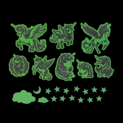 Créez une atmosphère féerique grâce à cette décoration autocollante à licornes. Le jour, elle séduit par ses couleurs joyeuses et, la nuit, elle phosphoresce délicatement pour aider les enfants à se sentir plus calmes et en sécurité.