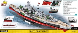 Grâce à des techniques de construction avancées et à de nouvelles pièces, vous profiterez d’hélices et de gouvernails mobiles, de tourelles rotatives et de canons relevables/abaissables. Un socle noir robuste avec une plaque imprimée « Tirpitz » est inclus. Aucun collage ni peinture requis – tout se construit uniquement avec des briques COBI, compatibles avec d’autres marques.