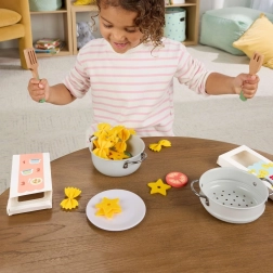 Découvrez la magie du jeu de cuisine avec le set de qualité Fisher-Price, qui combine casseroles en métal, ustensiles en bois et pâtes souples en feutrine. Les enfants apprécieront mélanger, égoutter et servir, tout en apprenant les bases de l’art de la table et de la coopération.