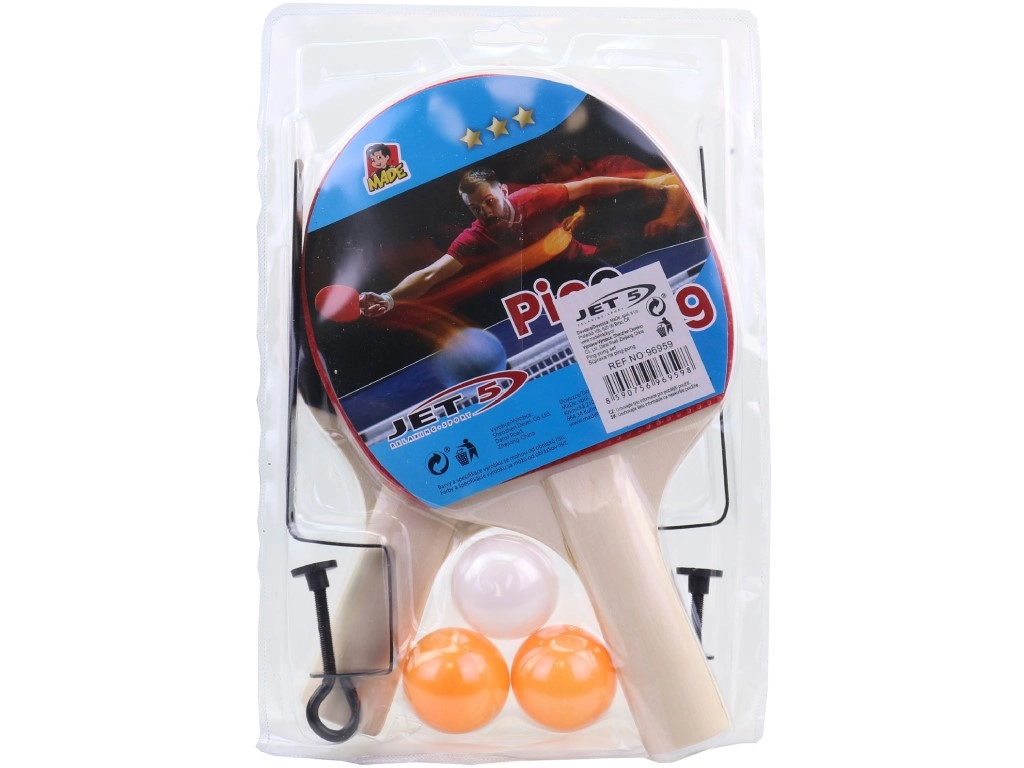 Set de ping-pong complet pour enfants dès 3 ans comprenant deux raquettes en bois, 3 balles et un filet de ping-pong. Idéal pour des tournois rapides à la maison et pour s’amuser au jardin ou au chalet. Les raquettes en bois de 25 cm tiennent bien en main et aident à développer la coordination et les réflexes.
