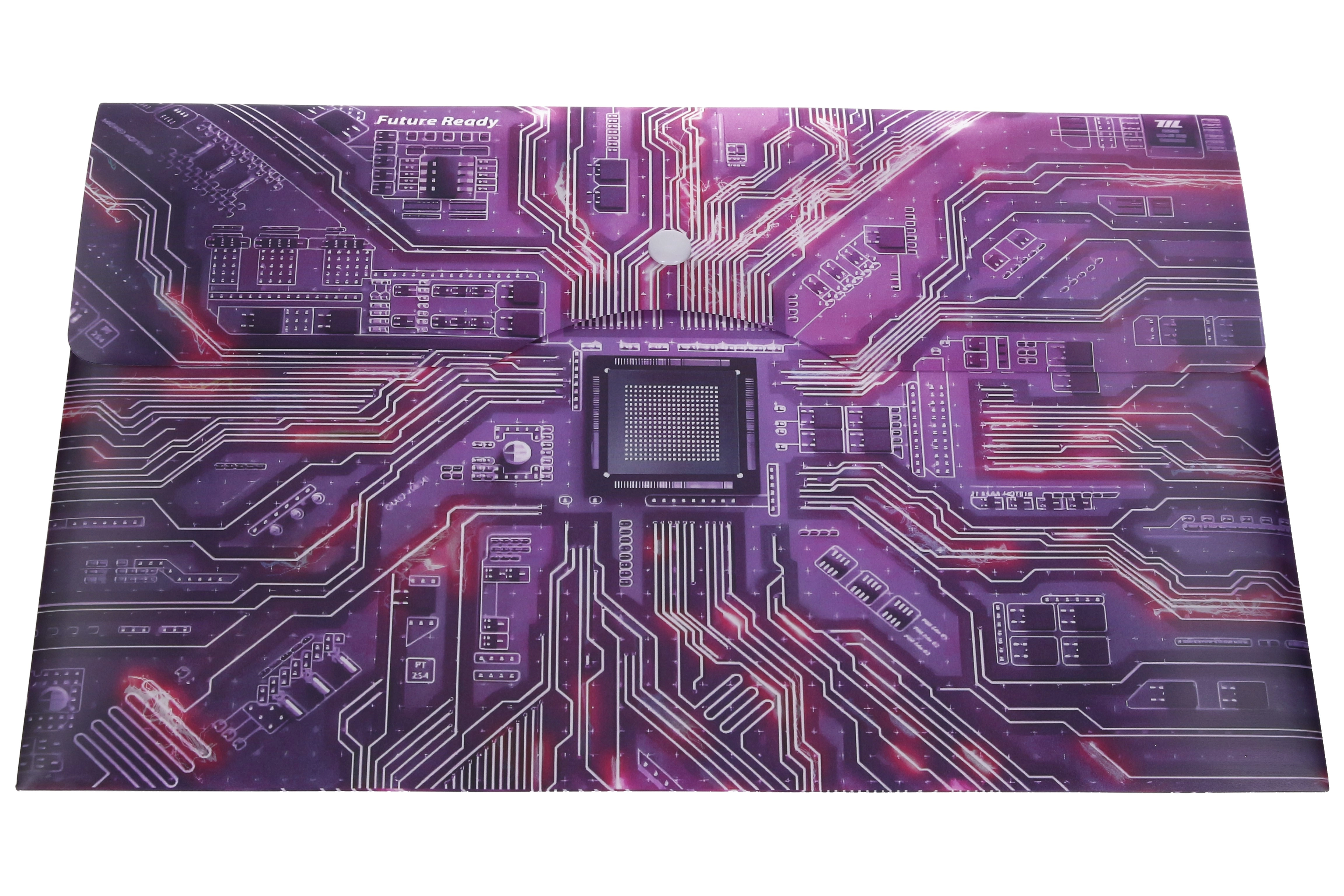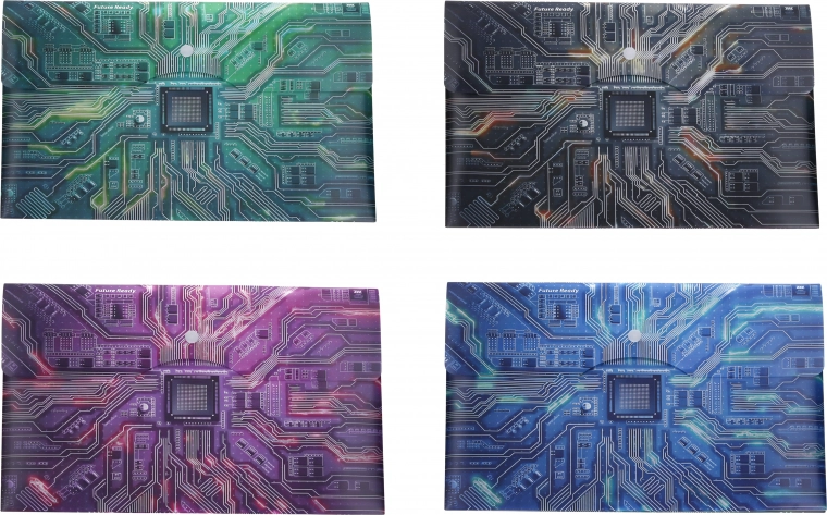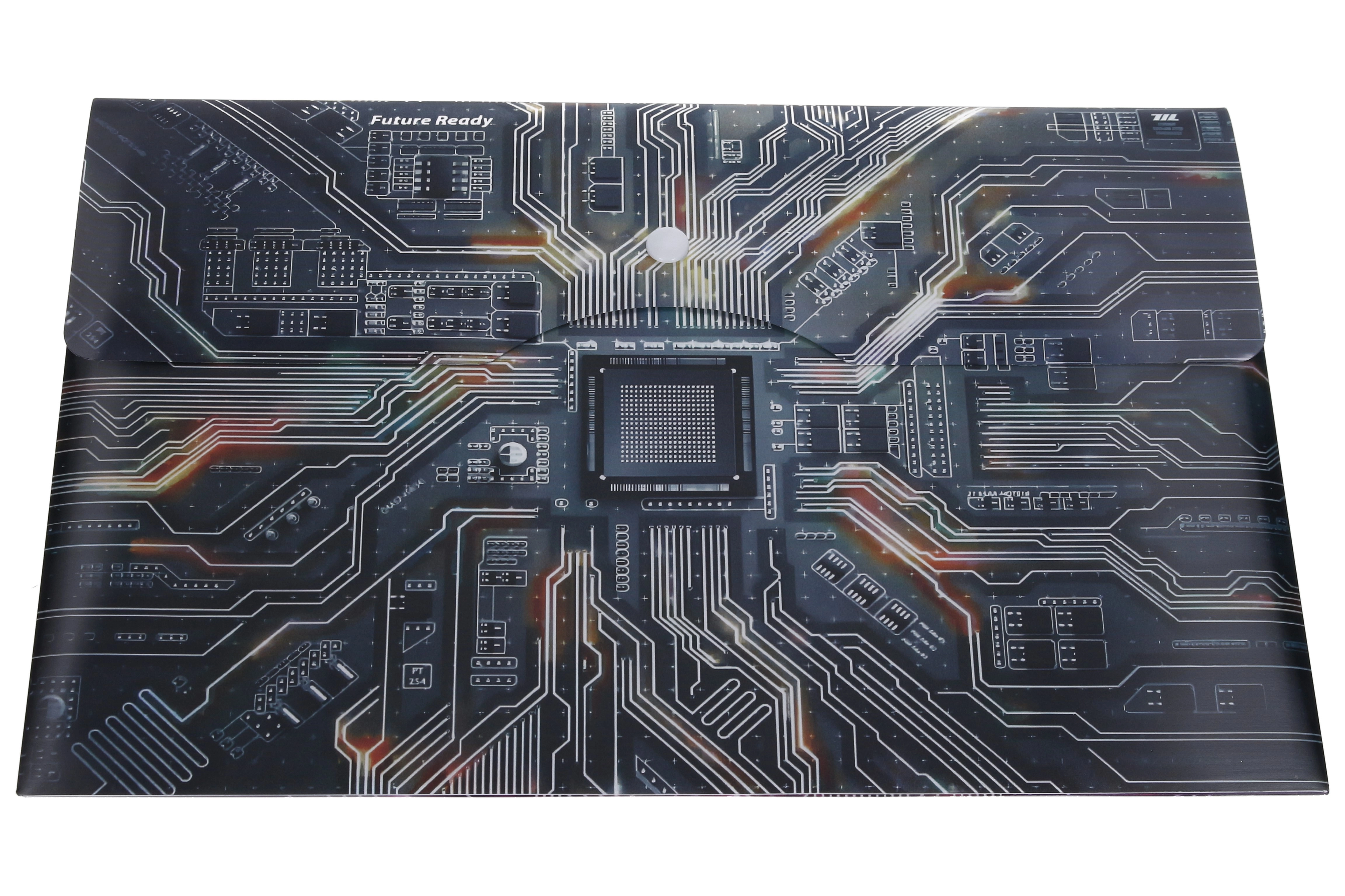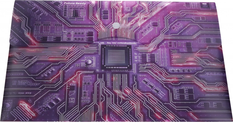 Parfaite pour l’école, les cours et le bureau – elle plaira aux étudiants, passionnés d’informatique et professionnels. Choisissez parmi 4 variantes de couleur avec un graphisme de circuits imprimés marquant, pour donner à vos supports un style technologique original.