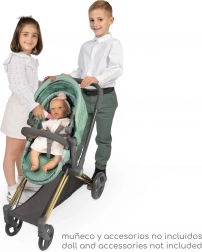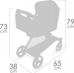 Des solutions pratiques complètent l’ensemble : capote réglable, sangle à trois points pour installer la poupée en toute sécurité et panier inférieur spacieux. La poussette se plie rapidement pour le stockage et le transport en voiture. Un élégant sac amovible assorti à la collection est inclus.