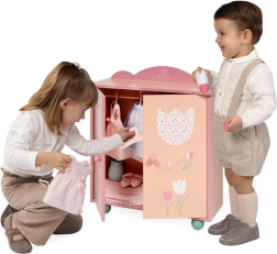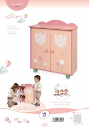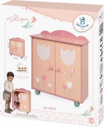 Une élégante armoire-penderie en bois pour poupées de la collection TULIPE, séduisante par son design pastel délicat, sa finition soignée et son aménagement intérieur pratique. Elle comprend une tringle et 3 cintres en bois pour ranger les tenues de manière ordonnée. Un superbe accessoire pour une chambre de fille, idéal pour les enfants à partir de 3 ans.