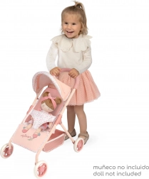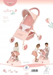 Élégante poussette de sport pour poupées de la collection Tulipe, remarquable par son design espagnol, sa finition soignée et sa maniabilité. Structure légère avec harnais trois points, panier de rangement pratique et hauteur de poignée de 55 cm, idéale pour les plus petits enfants. Le motif floral stylé dans des tons pastel chauds accompagne parfaitement chaque jeu d’enfant.