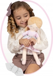 La collection SOPHIE 2025 se distingue par son style romantique en rose tendre, complété de dentelles et petits nœuds en gris clair et blanc. La poupée est livrée dans un emballage de protection, prête à être offerte.