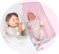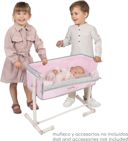 L’élégant berceau pour poupées de la série SOPHIE séduit par son design délicat et sa fonction pratique de co‑sleeping. Grâce à la barrière rabattable, aux pieds réglables et au lit à hauteur ajustable, vous pouvez le rapprocher facilement du lit d’enfant. Maniement aisé, finitions de qualité et délicate teinte rose avec détails gris et blancs créent un coin magique pour chaque poupée.