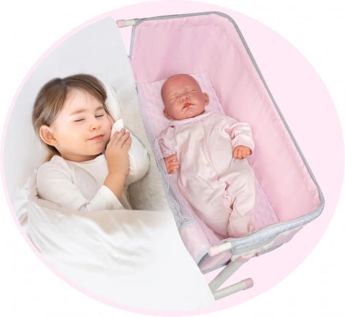 Le berceau pour poupées de la collection SOPHIE offre une expérience réaliste des soins au bébé. Grâce à la fonction de co‑sleeping, la petite maman peut garder sa poupée près d’elle la nuit – il suffit d’abaisser la barrière et de rapprocher le berceau en toute sécurité du lit. Le réglage en hauteur sur trois niveaux et les pieds mobiles assurent un ajustement parfait.