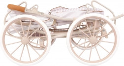 Cadre métallique, grandes roues à rayons et ressorts pour un doux bercement garantissent une conduite fluide et une longue durée de vie de la poussette.