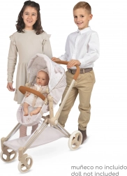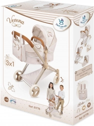 Élégante poussette pour poupées 3 en 1 de la collection VERONA, au design naturel subtil, avec une structure pliante et une nacelle amovible transformable en version sport. Elle offre une capote réglable, un harnais 3 points, des roues avant pivotantes pour une direction facile ainsi qu’un sac pratique et un panier de rangement. Un excellent choix pour les enfants dès 3 ans.