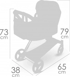 La poussette est pliante, occupe un minimum d’espace une fois repliée et se transporte aisément. La nacelle amovible et portable permet de transporter la poupée en toute sécurité, tandis que la capote réglable, les harnais 3 points et les roues avant pivotantes assurent une conduite confortable et fluide. Sont inclus un sac stylé et un panier inférieur pour tout le nécessaire.