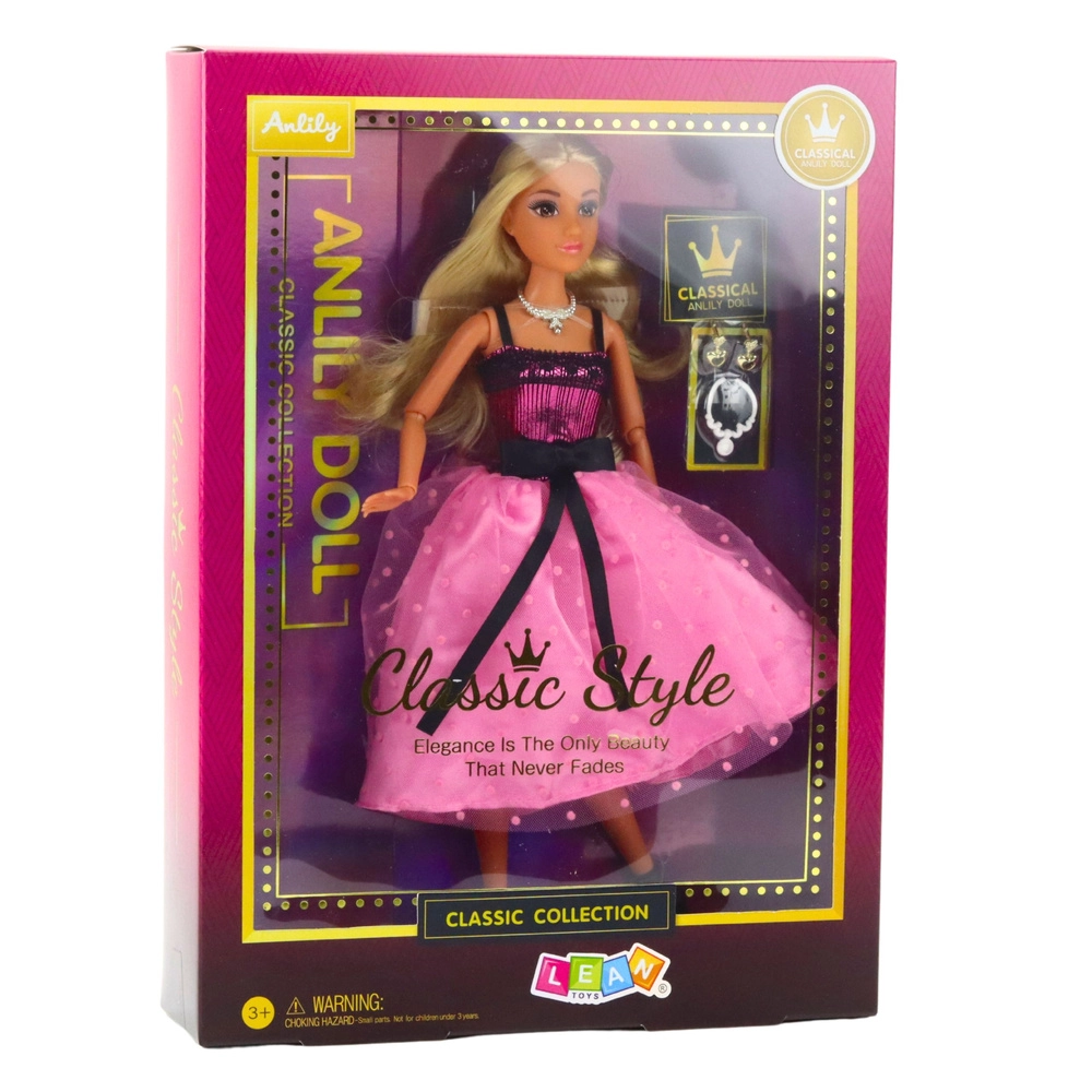 L’élégante poupée ANLILY en robe de bal rose‑noire ravira toute petite amatrice de mode. Elle possède de longs cheveux blonds pour créer des coiffures, des membres articulés pour un jeu réaliste et de nombreux accessoires – colliers, boucles d’oreilles et chaussures noires. Idéale pour des jeux créatifs et des histoires stylées.