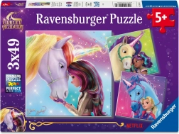 Découvrez le monde magique de UNICORN ACADEMY avec ce lot de trois puzzles de RAVENSBURGER. Chacun des trois puzzles compte 49 pièces et représente les héros du conte Académie des licornes dans des couleurs vives et éclatantes. Des matériaux premium et une fabrication précise garantissent la joie à chaque pièce emboîtée.