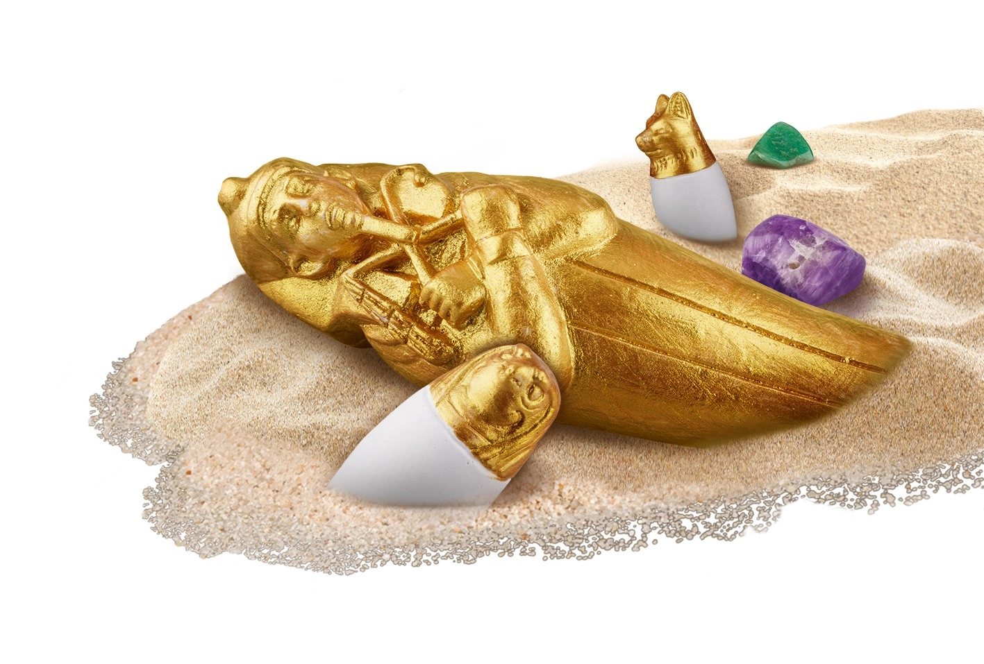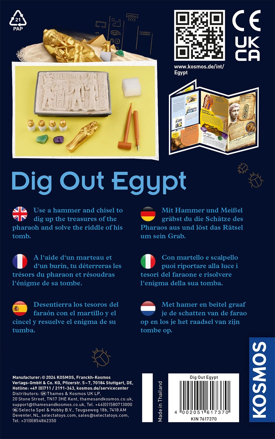 Avec le kit archéologique Kosmos fouilles égyptiennes, vos enfants deviennent de petits archéologues. À l’aide d’un burin et d’un marteau, ils dévoileront pas à pas les trésors dissimulés dans le plâtre tout en apprenant de nombreuses choses sur l’Égypte antique. Un guide pratique illustré est disponible en anglais avec une traduction tchèque, et le mode d’emploi tchèque peut être facilement téléchargé via un code QR.