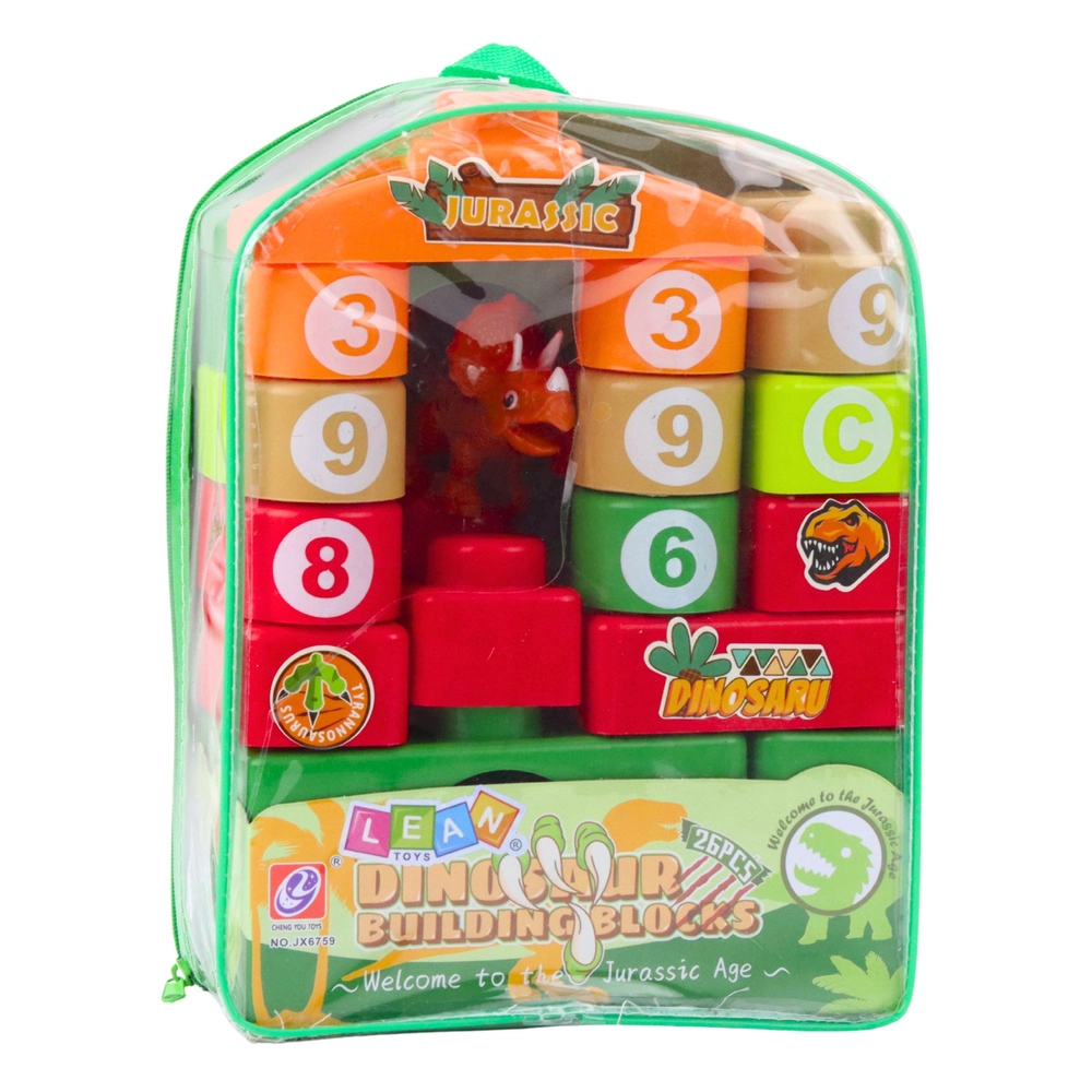 Jeu de construction dinosaures à dos – cubes éducatifs avec lettres et chiffres, 26 pièces