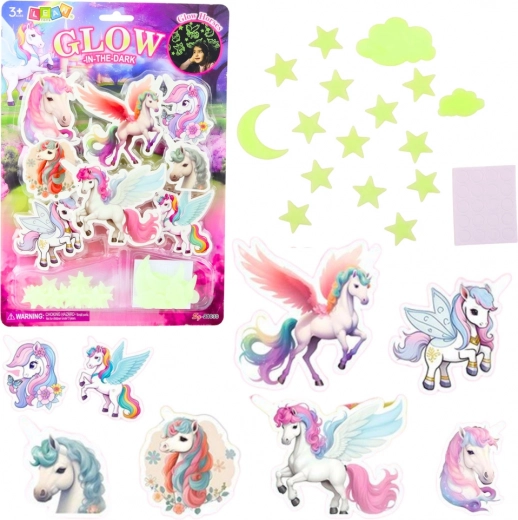 Créez une atmosphère magique dans la chambre des enfants avec des autocollants muraux fluorescents au motif de licornes. Les personnages pastel sont complétés par des étoiles, une lune et des nuages, qui brillent dans l’obscurité après exposition à la lumière et favorisent un endormissement agréable. Les autocollants se fixent facilement grâce aux éléments en mousse autocollants, adhèrent au mur, au plafond et aux meubles, et peuvent être retirés sans laisser de traces.