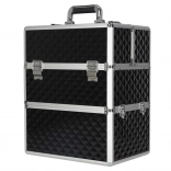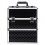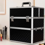 Cette grande mallette de maquillage de style « train case » propose un agencement intelligent : à l’ouverture du couvercle, quatre compartiments clairs se déploient, et la partie inférieure offre une grande chambre profonde pour les produits volumineux, flacons et outils. Sa fabrication durable, avec bords en aluminium et coins renforcés, protège le contenu lors des déplacements comme au quotidien.