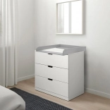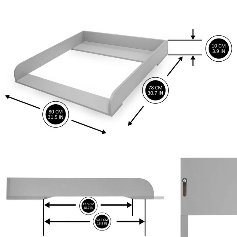 Extension à langer pratique en bois, dans une élégante couleur grise, pour un change sûr et confortable. Offre une installation et un démontage faciles, une planche avant coulissante jusqu’à 4 cm et une compatibilité avec les commodes IKEA (Nordli, Malm, Hemnes). Une solution idéale pour gagner de la place et organiser intelligemment la chambre de bébé.