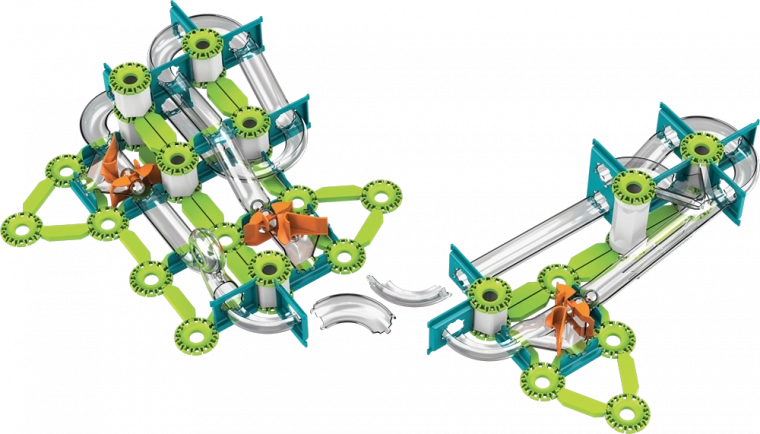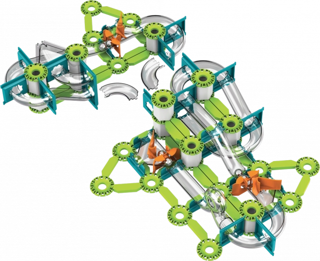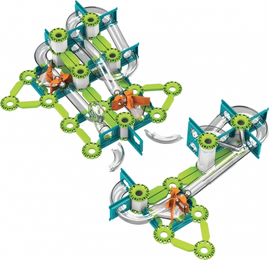 Assemblez jusqu’à 11 circuits et boucles différents, où les billes sont propulsées par la gravité. Testez des descentes rapides, des virages et des loopings.