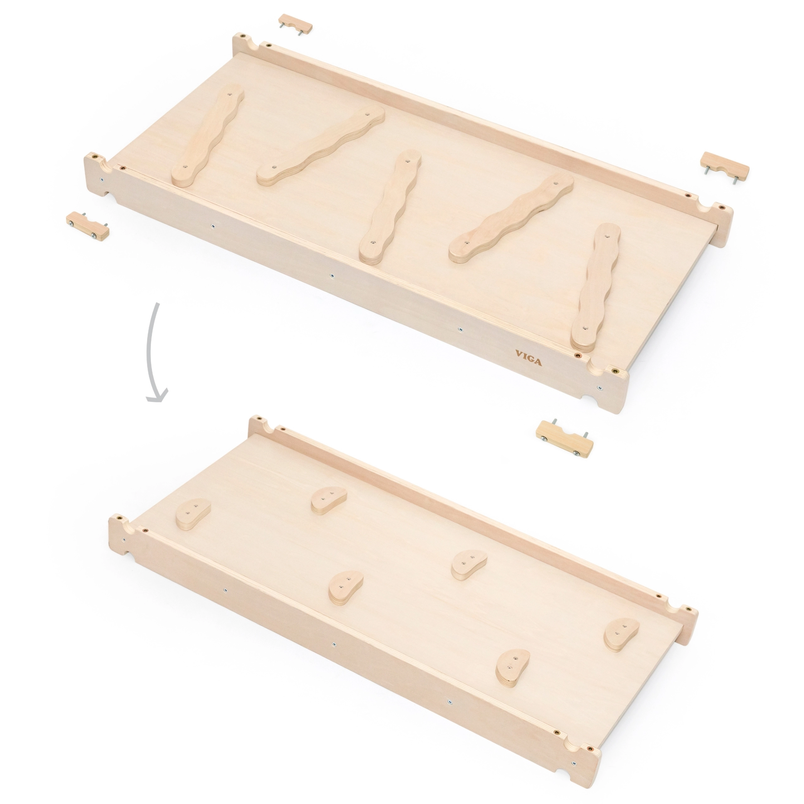 Cette planche réversible est conçue pour le mouvement polyvalent et le jeu intérieur en toute sécurité. La surface lisse est idéale pour glisser ou comme passerelle stable, tandis que l’autre côté avec prises invite les enfants à grimper et à relever de nouveaux défis. Le bois de hêtre de qualité et le contreplaqué garantissent solidité, stabilité et longue durée de vie.