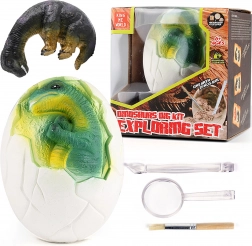 Le couteau, le pinceau et la loupe inclus permettent aux enfants de dégager en toute sécurité, pas à pas, le dinosaure caché.