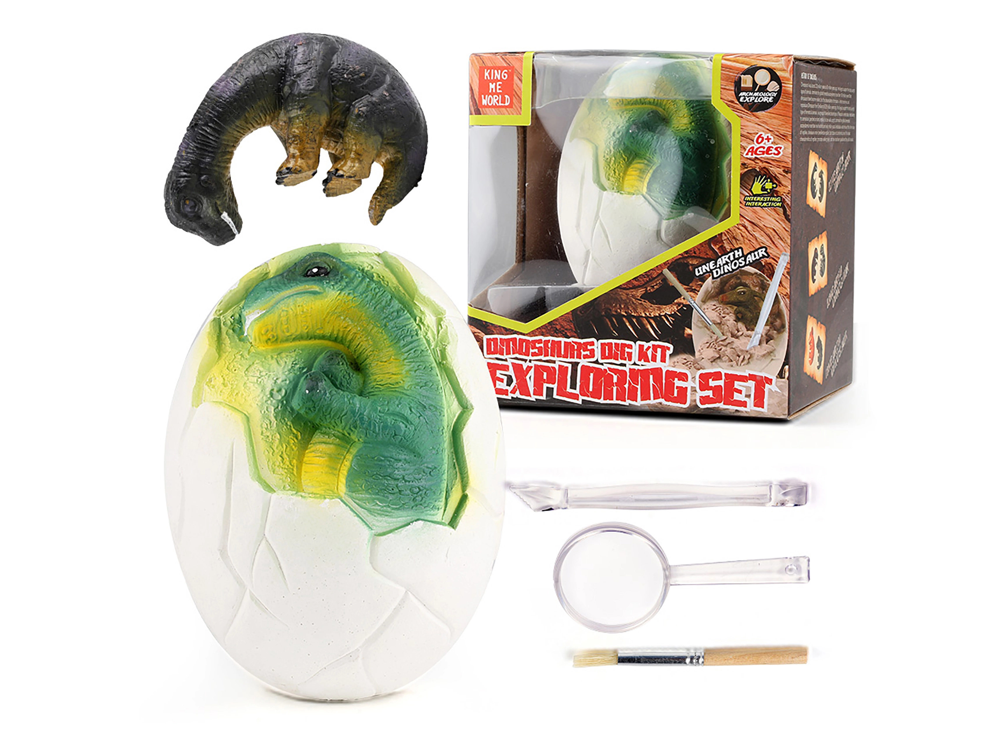 Découvrez le plaisir avec un œuf de dinosaure à creuser de 11 cm. Grâce aux outils fournis – couteau, pinceau et loupe – les enfants révèlent progressivement le dinosaure caché. Un jeu éducatif idéal pour les petits explorateurs, qui développe patience, motricité fine et curiosité. Disponibles en 3 variantes de figurines de dinosaures.