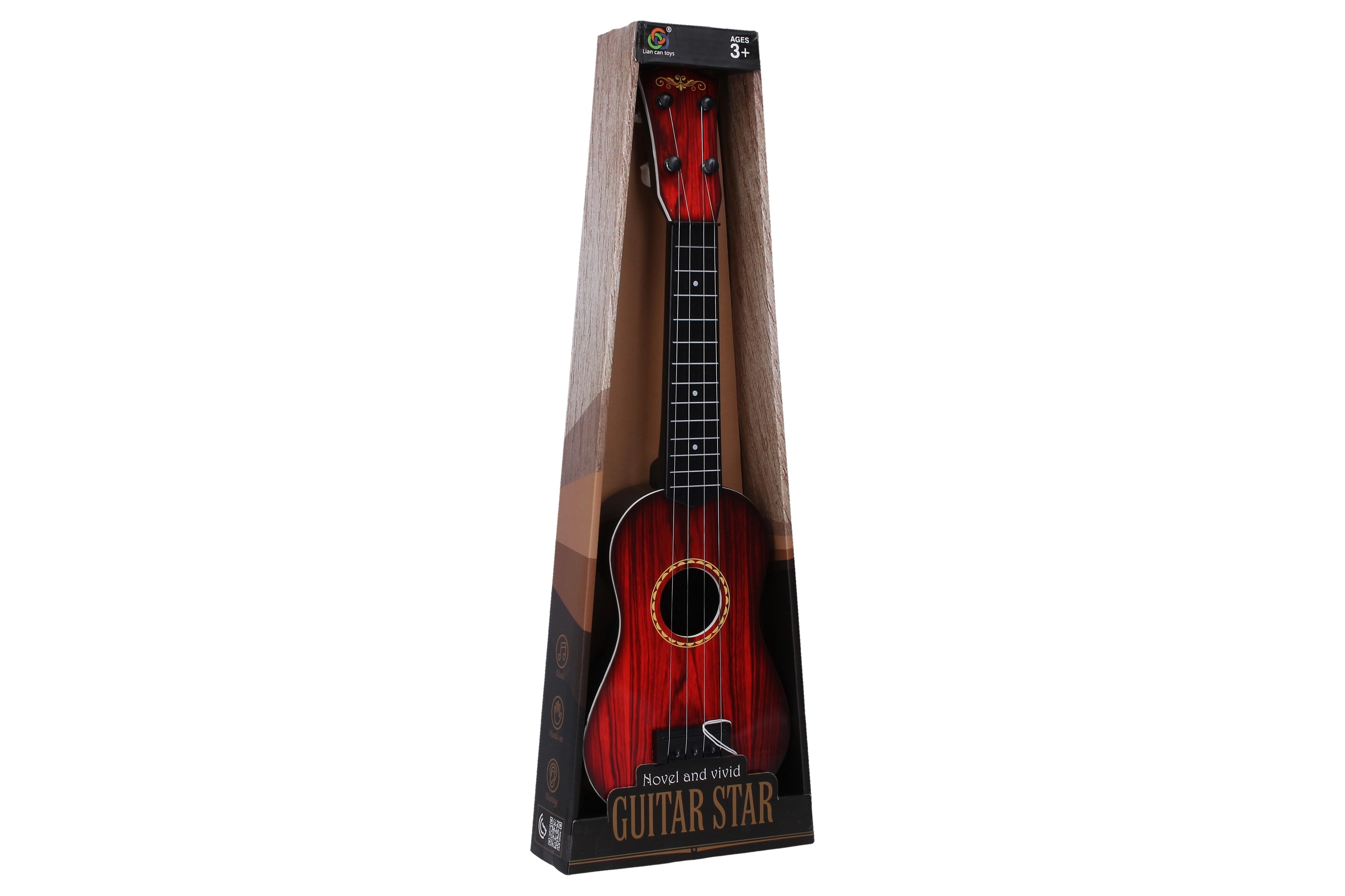 La guitare est conçue pour être agréable à tenir, et sa taille de 50 cm convient aux petites mains. Elle est disponible en version claire et foncée, afin que chacun puisse choisir selon son style.