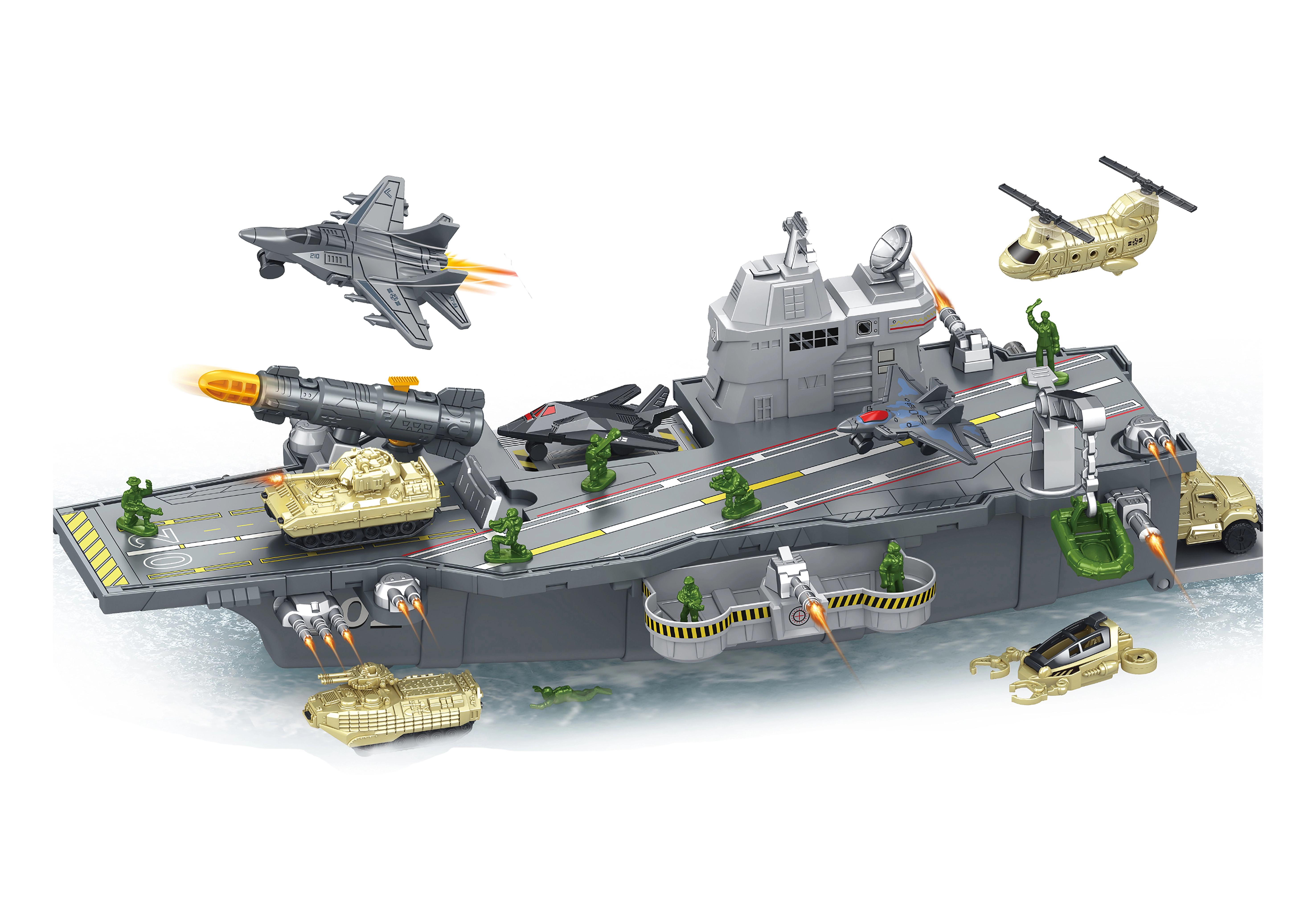 Porte-avions, véhicules et figurines de soldats
