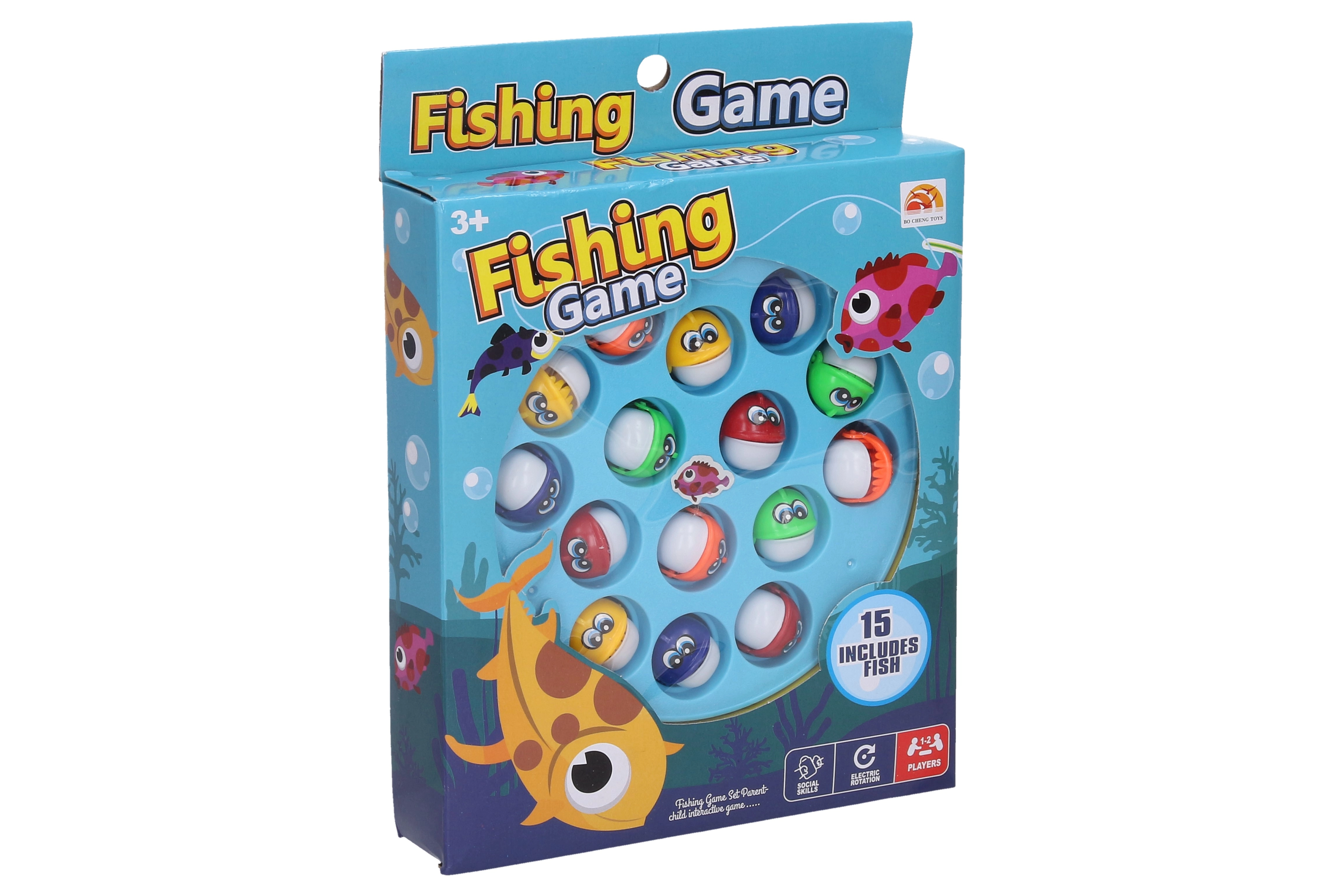 Amusant jeu de société de pêche aux poissons pour un ou 2 joueurs, offrant une action rapide et un entraînement des réflexes. Contient 15 poissons et 2 cannes, les dimensions du jeu sont de 16 × 17,5 × 3 cm. Alimentation par 2× AA 1,5 V (non fournies). Disponible en plusieurs variantes.