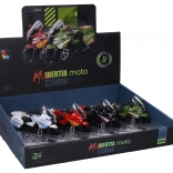- Mécanisme à friction – tirez en arrière, relâchez et la moto file vers l’avant.