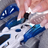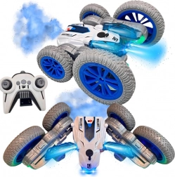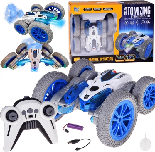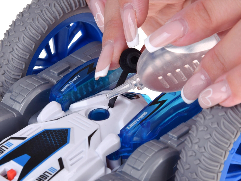 Cette voiture cascadeuse RC est conçue pour une conduite riche en adrénaline à la maison comme sur surface lisse en extérieur. Grâce à ses grandes roues et à sa construction agile, elle réalise des flips, roule sur le « ventre et le dos », change rapidement de direction et effectue d’impressionnantes rotations à 360°. L’effet de vapeur d’eau éclairée et les LED bicolores donnent un look spectaculaire à la conduite.