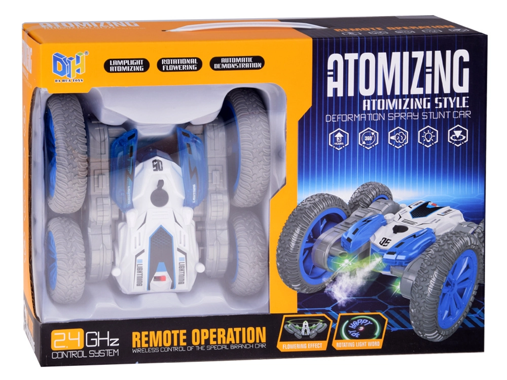 La voiture roule en avant/arrière et sur ses deux faces, réalise des flips et des rotations rapides à 360°. Idéale pour un show plein d’action et de fun.