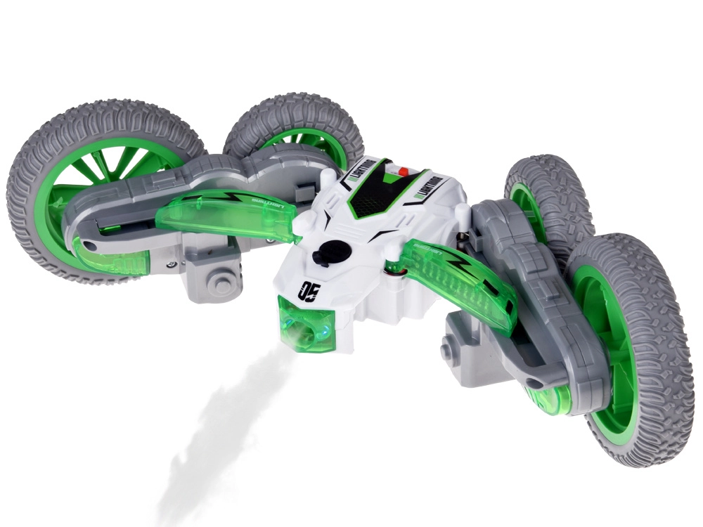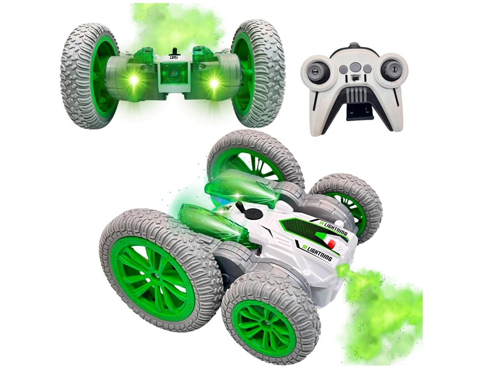 Cette voiture cascadeuse RC ultra rapide fait passer les courses à la maison au niveau supérieur. Elle roule en avant et en arrière, sait tourner à 360°, se retourner et rouler sur ses deux faces. Les LED avant et la vapeur d’eau réaliste créent un effet « fumée » pour un vrai show.