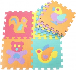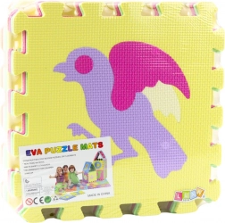 Le tapis de puzzle en mousse EVA se compose de 9 grandes dalles (30,5 × 30,5 cm) aux couleurs vives. Les inserts amovibles en forme d’animaux (p. ex. oiseau, ours, coq) offrent un apprentissage ludique et favorisent la coordination œil–main. La surface texturée et antidérapante est agréable au toucher, et la mousse souple atténue les chutes et le bruit.