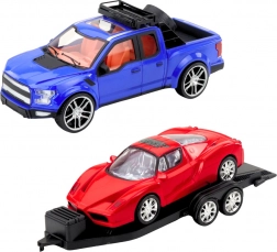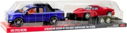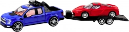 La remorque à deux essieux permet de charger et décharger facilement la voiture de sport. Le pickup tout-terrain tracte la remorque en toute fiabilité et multiplie les possibilités de jeu.