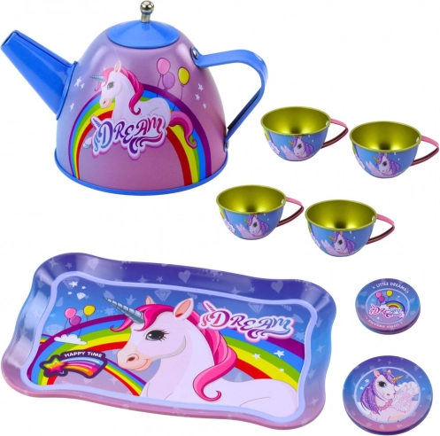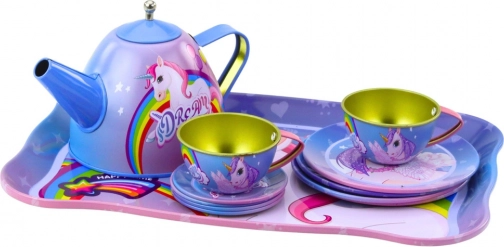 Un service à thé en métal magique à motif licorne offre des heures de jeu créatif aux enfants. Fabriqué en métal robuste, il est sécurisé, solide et durable. Son design coloré stimule l’imagination et l’apprentissage du jeu en groupe – idéal pour des goûters thé avec des amis, des poupées et des peluches.