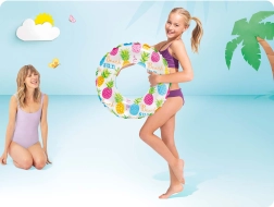Des imprimés attractifs avec des poissons, des fruits ou des inscriptions rendent la baignade ludique et améliorent la visibilité de la bouée dans l’eau.