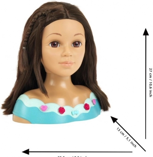 Une tête réaliste avec de longs cheveux lavables permet de brosser, coiffer et créer des tresses et des coiffures comme chez le coiffeur.